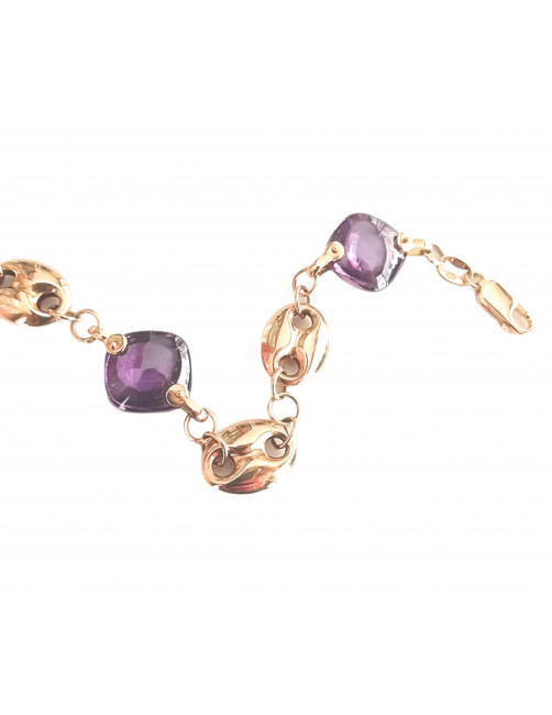 18K Gold bracelet with calabud design and three amethyst stones that make it unique. A timeless bracelet with a touch of color very subtle and elegant. The carabiner closure is very safe and discreet. Bracelet of Spanish design and manufacture. It is shipped presented in a leather case of Jewelry Beamar. Gift delivery on request.
