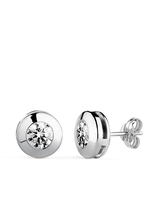 Earring "Chaton" style in white gold 18K with a central zirconia- 8.5mm. It is a Spanish-made earring with a very safe snap closure. It is shipped presented in a Beamar jewelry case. Gift delivery on request.