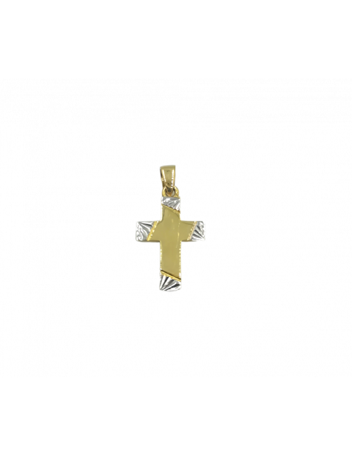 The "Cube" Cross is made of 18K Gold with white gold nuances on the ends and yellow gold on the rest of the cross. A Spanish-made cross with a very young and current flat design. It has a small size about 2.3 cm and is solid. It is sent presented in a Beamar Jewelry leather case.