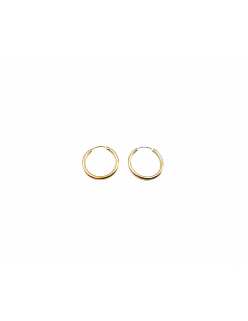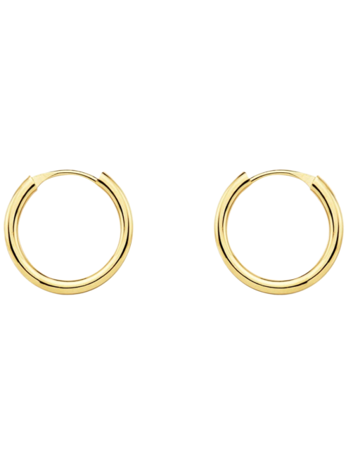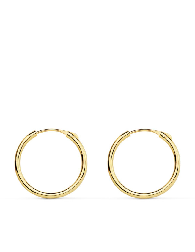 Hoop earrings Creole style manufactured in gold Primera Ley 18K yellow. The size is small, they have 15mm diameter and a medium thickness. These Spanish-made hoops are ideal for girls or as an adult hoop earring in medium-small size. It is shipped presented in a leather case of Beamar Jewelry. Shipping for gift on request.