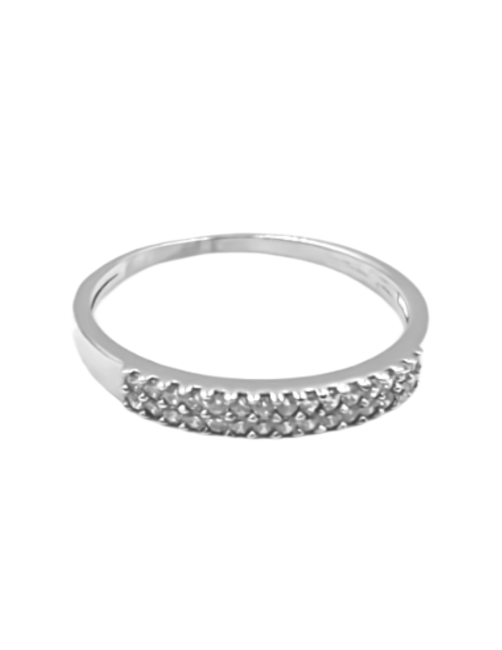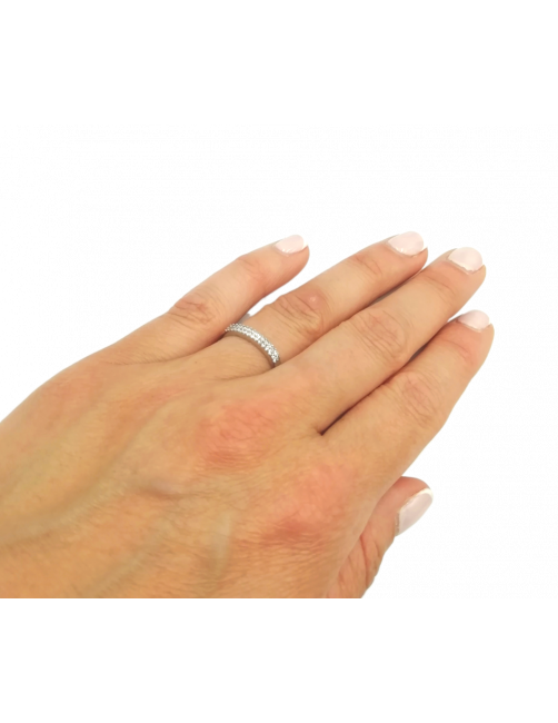 Ring in White Gold 18K with double lane of zircons set. Ideal Compromise.