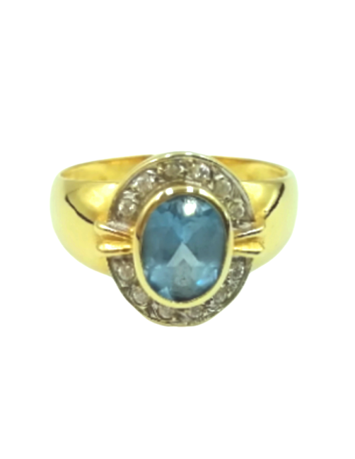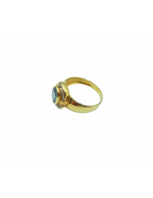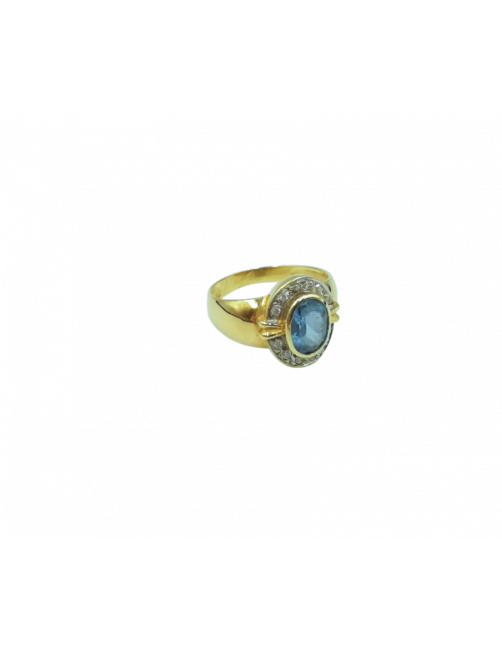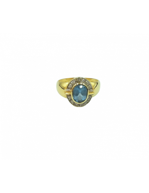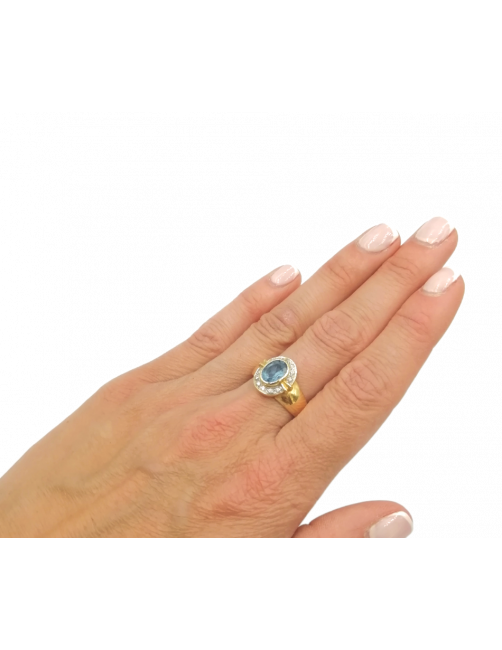 "Marea" Ring in 18K Gold with a central faceted Aquamarine and set zircons that surround and provide luminosity to the ring. A classic and elegant jewel of Spanish manufacture. It is sent presented in a Beamar Jewelry leather case.