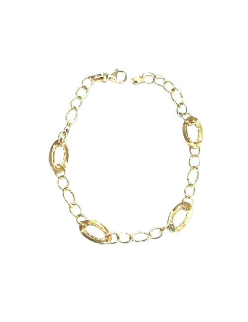 The "Ocean" bracelet is made of 18K Gold. It has a marine design that combines a gold chain and an openwork link in the shape of a shell. An original and very versatile bracelet reminiscent of the sea. Spanish-made bracelet with a very secure lobster clasp. It is sent presented in a Beamar Jewelry leather case.