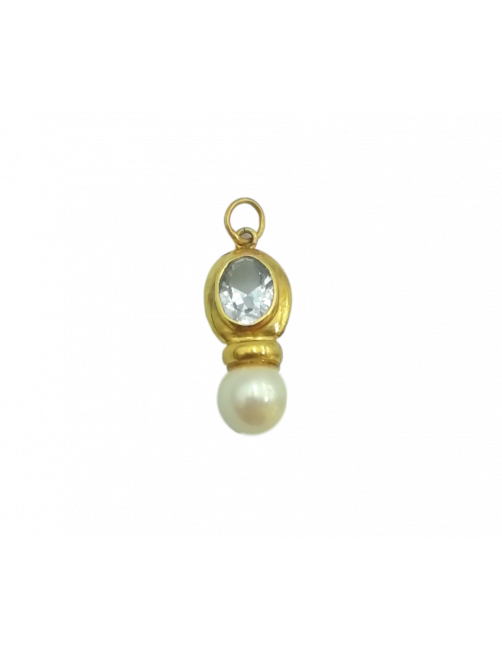 "Blue See" Pendant in 18K Sterling Gold. Elegant pendant with faceted Aquamarine on the top and Cultured Pearl on the bottom, a combination that brings light and freshness in a unique jewel. The size is ideal with 3.2 cm in length (including strap). It is sent presented in a Beamar Jewelry leather case.