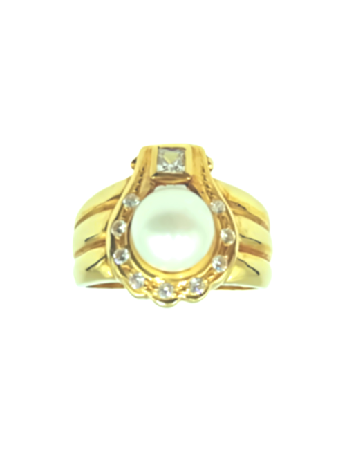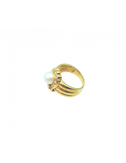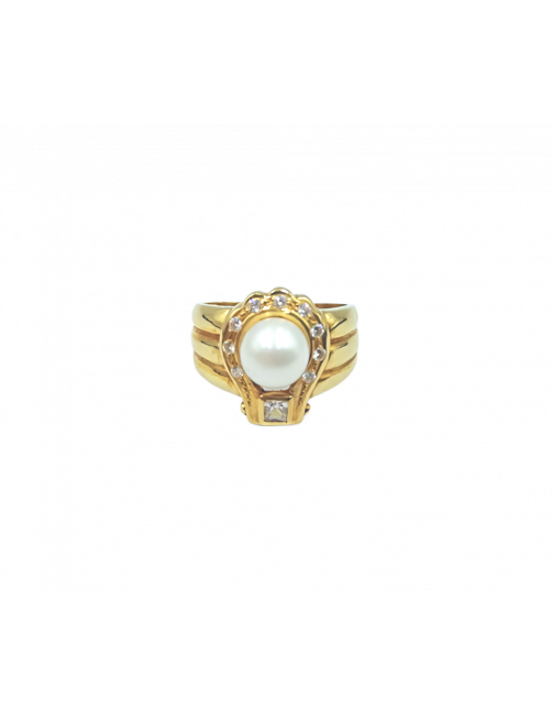 The "Lady" Ring is made of 18K Gold and has a precious Cultured Pearl as a central piece, a square zirconia that crowns the pearl and round zircons set that provide a lot of luminosity. A timeless and very elegant design ring. It is sent presented in a Beamar Jewelry leather case and with a certificate of authenticity.