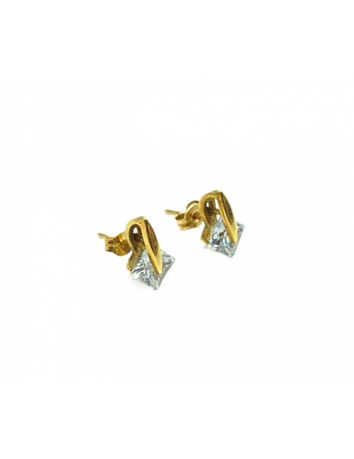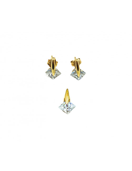 "Karina" Earring in 18K Gold with a rhombus design in Zirconia. Spanish-made earring with matching pendant option. Very comfortable and safe pressure closure.