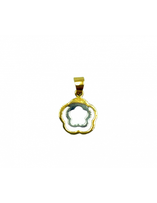 "Camila" Pendant in 18K White and Yellow Gold. It has a flower sculpture design that combines white gold and yellow gold. The size is ideal to combine with other pendants.