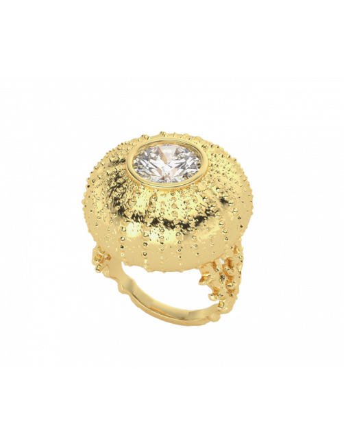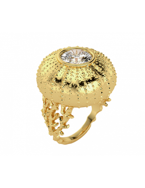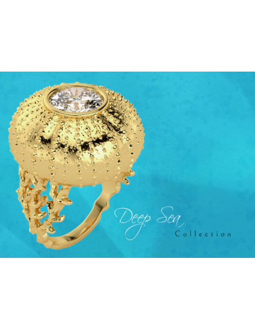 The "Miracle of Salacia" ring is a unique piece in 18K Gold from the Deep Sea collection. With the nature of Coral as a base and the sinuous shape of the Echinoidea, the piece is crowned with Diamond of 2.15 ct