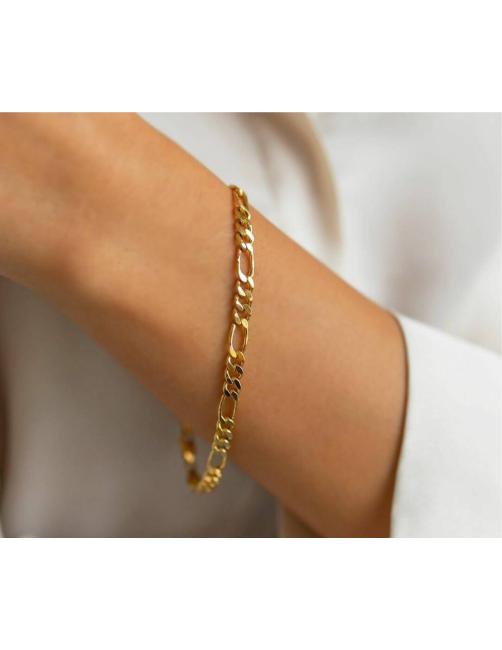 Unisex bracelet made of yellow gold Primera Ley 18 K. The bracelet has a very versatile design and with a medium size of 5mm. It has an ideal length of 21cm and a very safe carabiner closure.