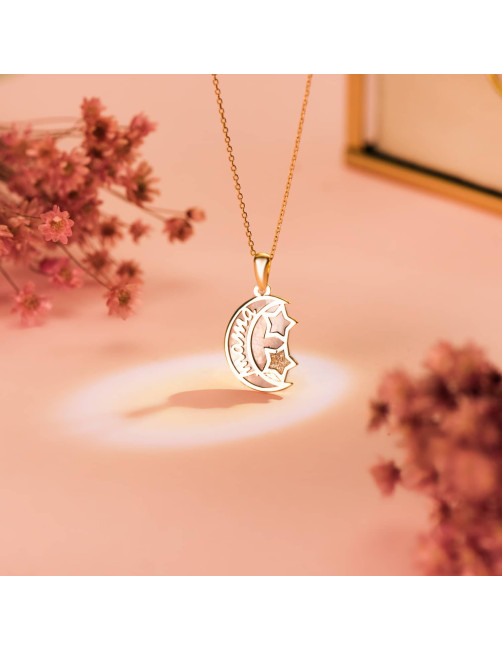 -Pendant with moon design and text mom