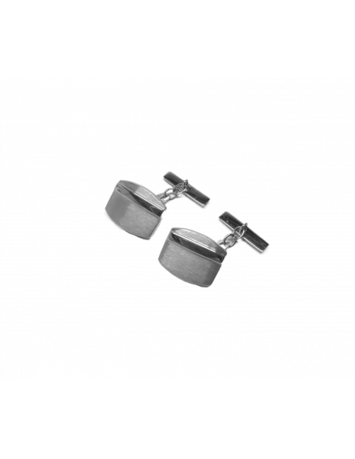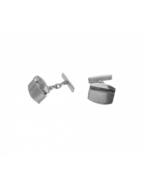 Rectangle" cufflinks made in 18K white gold. An elegant and sophisticated piece of Spanish jewellery designed especially to take care of all the details for men. The cufflinks have a rectangular design, shaded centre and linear shiny detail. The clasp is made of chain at the back to fit perfectly to the cuffs of the shirt. If you wish, they can be engraved free of charge, please indicate what you want to engrave at the end of the order. Shipped in a Beamar Jewellery box.