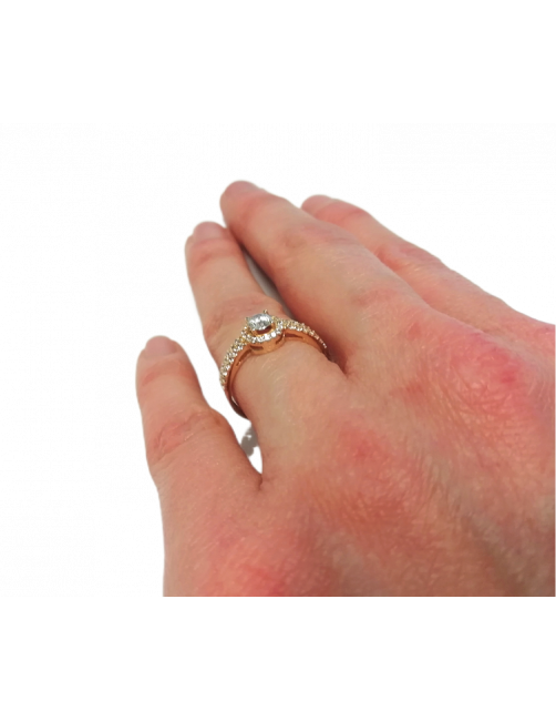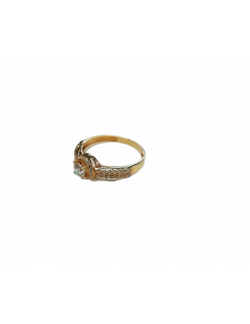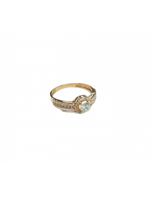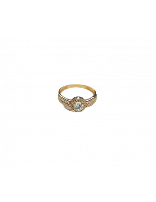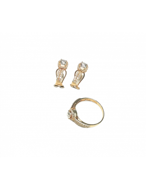 Ring "Galeria" in 18K Yellow Gold, central zirconia and side double rails with zirconia set. It has matching earrings.