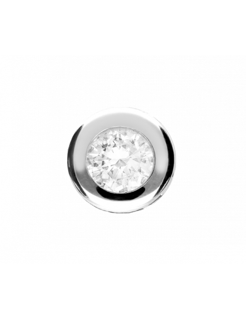 Colgante de estilo “Chatón” en oro blanco de Ley 18K con una circonita central de 6,5 milímetros. Es un colgante de fabricación española, la cadena se pasa por detrás del colgante y queda oculta para una mayor estética (cadena no incluida). Se envía presentado en un estuche de Joyería Beamar. Envío para regalo bajo la petición del cliente.