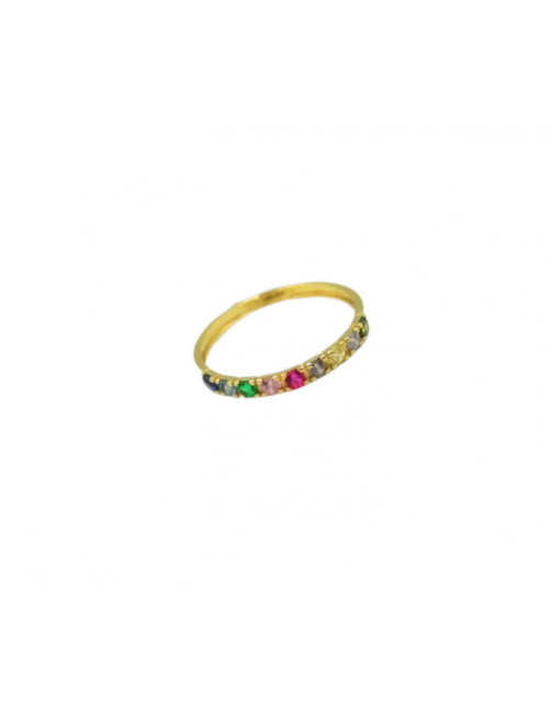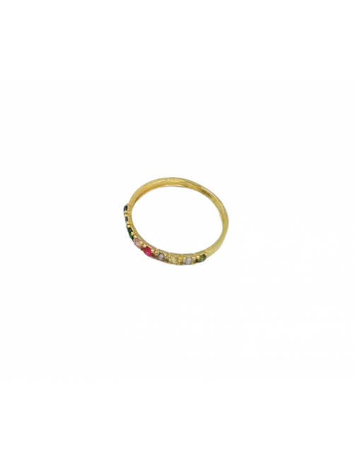 La sortija "Rainbow" fabricada en Oro de 18K tiene un diseño joven y divertido. Las piedras están engastadas y forman un precioso arco de color con Rubí, Aguamarina, Esmeralda, Rosa de Francia, Ágata Gris, Citrino, Amatista y Olivina. Se envía presentada en un estuche de Joyería Beamar. Envío para regalo bajo la petición del cliente.