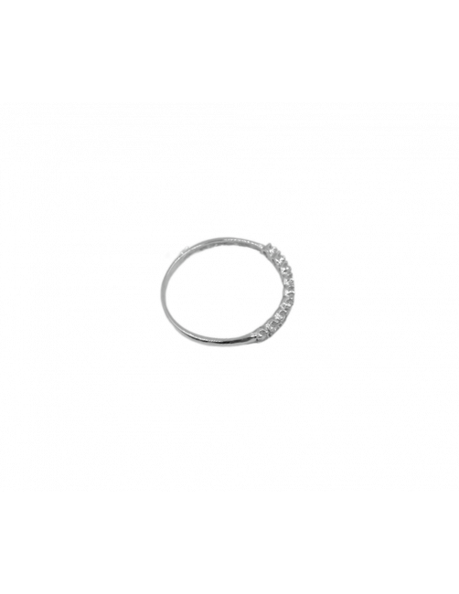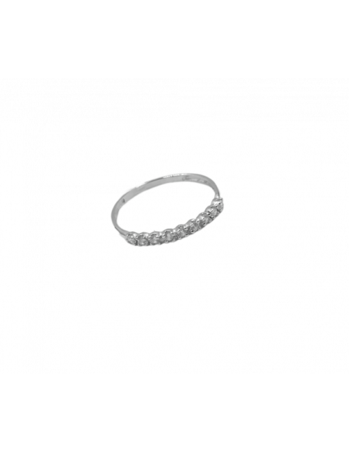Anillo de Oro Blanco 18K con carril de circonitas engastadas con cuatro garras.