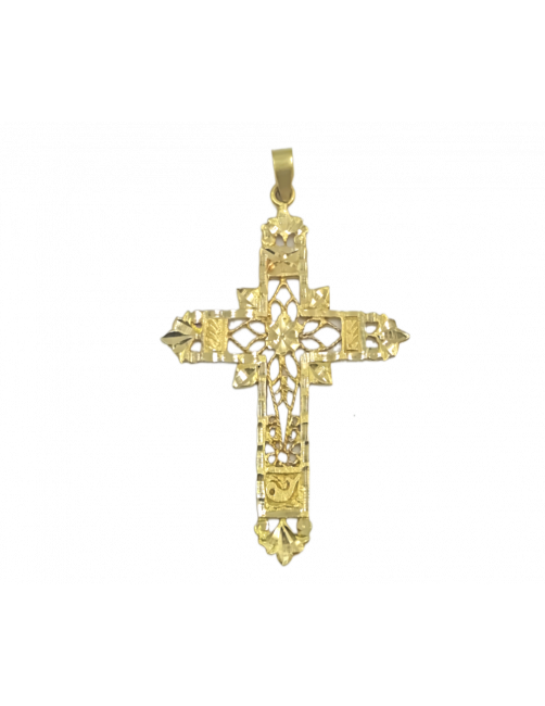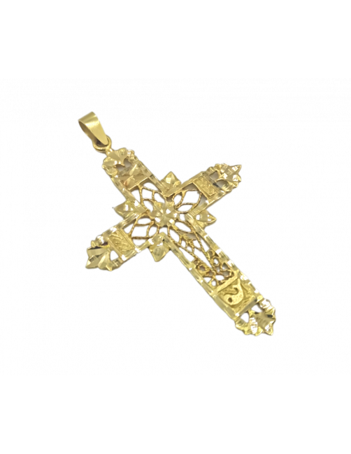 La Cruz "Israelita" es de Oro de Ley 18K. El diseño es una obra de arte en joyería, la cruz está labrada en todos sus lados, tiene el detalle de Jonás y la ballena en la parte inferior y la Sagrada Forma en el centro. El tamaño es de 5 cm contando la reasa. Se envía presentada en un estuche de piel de Joyería Beamar. Envío para regalo bajo petición del cliente.