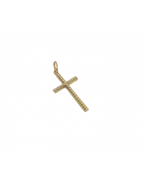 La Cruz "Rizada" está fabricada en Oro de Ley 18K. Una cruz de fabricación española de 3 cm de largo, diseño de palo redondo con rizo y trasera plana. Ideal para Comunión. Se envía presentada en un estuche de piel de Joyería Beamar. Envío para regalo bajo petición del cliente.