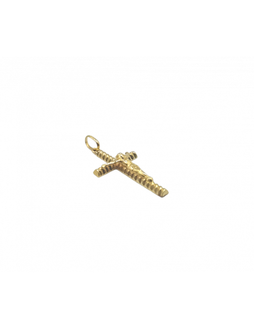 La Cruz "Rizo" está fabricada en Oro de Ley 18K. Una cruz con Cristo de fabricación española, 3 cm de largo, diseño de palo redondo con rizo y trasera plana. Ideal para Comunión. Se envía presentada en un estuche de piel de Joyería Beamar. Envío para regalo bajo petición del cliente.