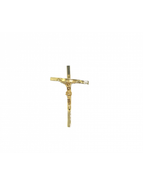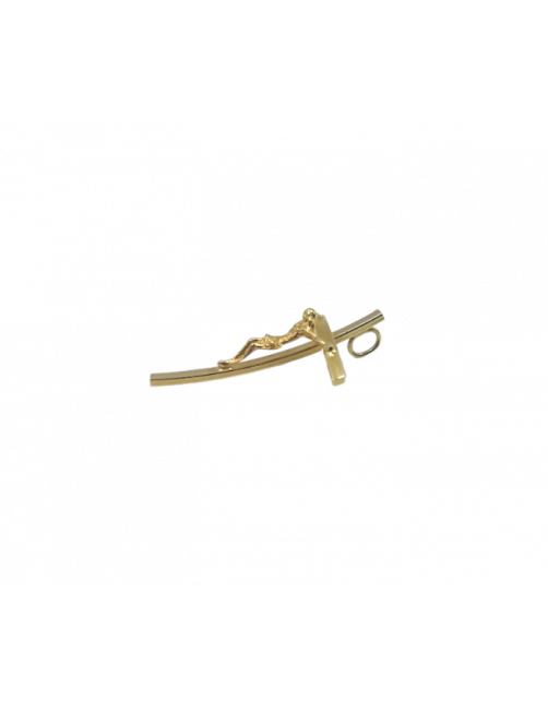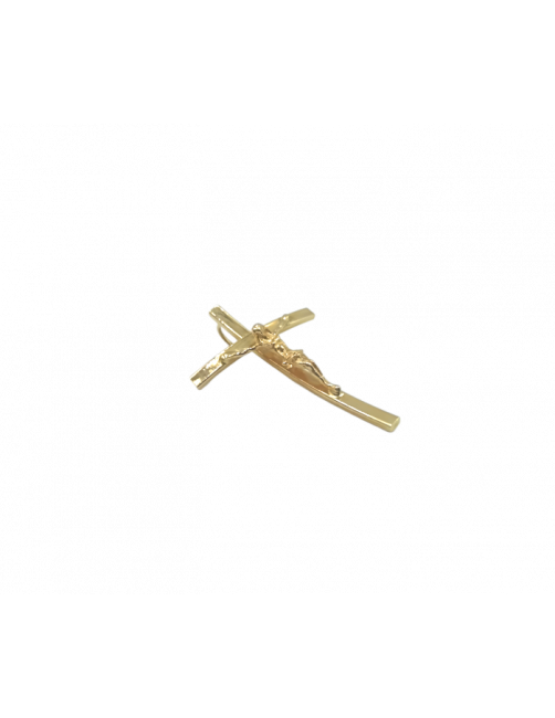 La Cruz "Curve" está fabricada en Oro de Ley 18K. Una cruz de fabricación española de 3,2 cm de largo, diseño de palo plano en curva muy divertido, cristo central y detalle de reasa trasera. Ideal para Comunión. Se envía presentada en un estuche de piel de Joyería Beamar. Envío para regalo bajo petición del cliente.