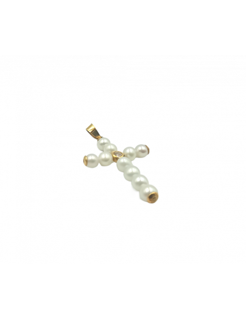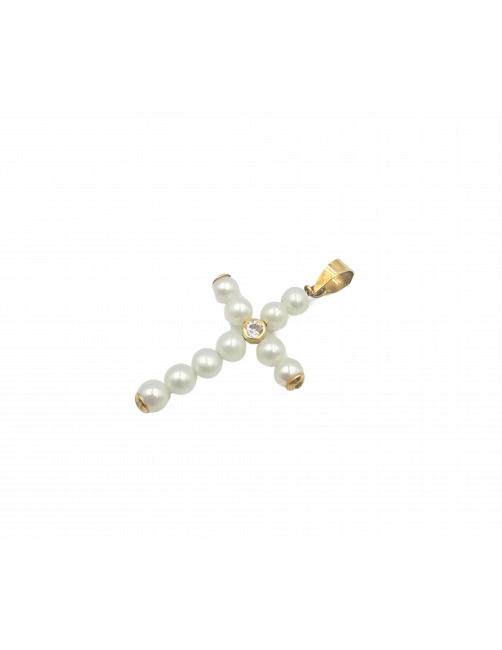 La Cruz "Perlas" está fabricada en Oro de Ley 18K con diez Perlas Cultivadas y una circonita central. Una cruz elegante que mide 4cm de largo incluyendo reasa y es de fabricación española. Se envía presentada en un estuche de piel de Joyería Beamar.