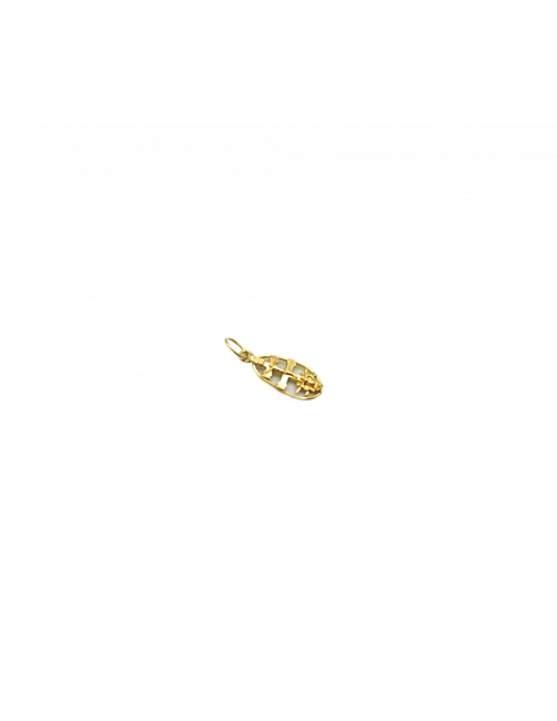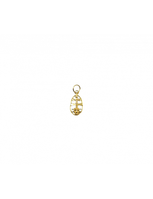Cruz de Caravaca en Oro de Ley 18K con diseño de cerco de oro ideal para alfiler de bebé o uso infantil y evitar que se enganche. Cruz de fabricación española y tamaño muy pequeño y discreto, el largo es de 1,5cm incluyendo reasa. Se envía presentado en un estuche de Joyería Beamar. Envío para regalo bajo la petición del cliente.