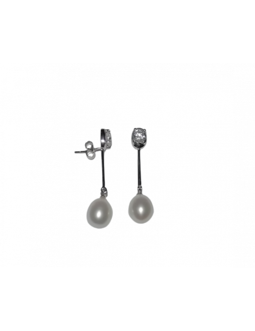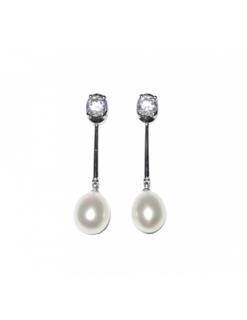 Elegantes pendientes de oro blanco de Ley 18K. Cuentan con una circonita en la parte superior engastada con cuatro garras, un bastón rígido de oro blanco y termina con una perla cultivada en color blanco y forma de lágrima. Es un pendiente para cualquier ocasión ya que es una pieza clásica, elegante y versátil. Ideal para novia o fiesta. Son pendientes de fabricación española y tienen un cierre de presión que es muy favorecedor y seguro. Se envía presentada en un estuche de piel de Joyería Beamar. Envío para regalo bajo la petición del cliente.