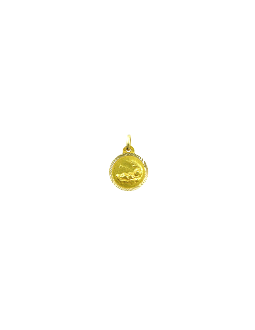 Medalla de bebé "Niño en Pajas" en Oro de 18K. La medalla es maciza y tiene al Niño Jesús en el centro en su cuna de paja y una estrella fugaz. Es de tamaño ideal para bebé con 2cm de diámetro incluyendo reasa. La parte trasera es lisa, por lo que se puede grabar. GRABACIÓN INCLUIDA: indique el texto a grabar cuando finalize el pedido. Se envía presentado en un estuche de piel Joyería Beamar.