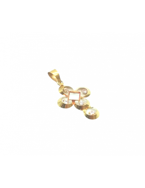 La Cruz "Aida" está fabricada en Oro de Ley 18K con cinco circonitas engastadas en garra. Una cruz que mide 2,5 cm de largo, de fabricación española y diseño moderno con forma de círculos que aporta luminosidad al escote y rostro. Se envía presentada en un estuche de piel de Joyería Beamar.