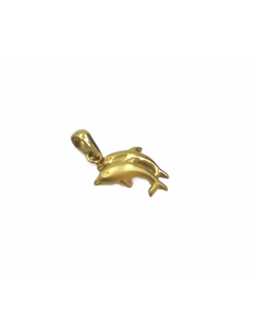 Colgante "Pareja de Delfines” en Oro de Ley 18K. Tiene un diseño muy original de escultura con dos delfines que combinan Oro mate y brillo. El tamaño es 2 cm de longitud (incluyendo reasa). Se envía presentado en un estuche de piel Joyería Beamar.