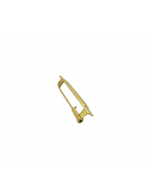 Alfiler de bebé "Alejandro" en Oro de 18K con cierre muy seguro para bebé. También tiene una reasa que permite colgar un colgante o cruz en la parte inferior. 3 cm de ancho.