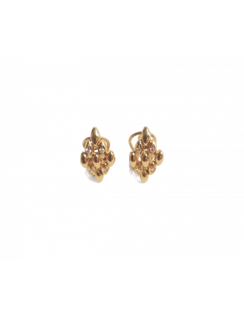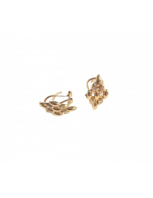 Preciosos pendientes de Oro de Ley 18K en amarillo con diseño Panter en forma de rombo y cuatro circonitas engastadas. Las circonitas aportan mucha luz al rostro, y el cierre omega proporciona un ajuste perfecto, lo que resulta en una joya clásica y muy versátil ideal para cualquier ocasión. Disponemos de sortija a juego. Se envía presentada en un estuche de Joyería Beamar.