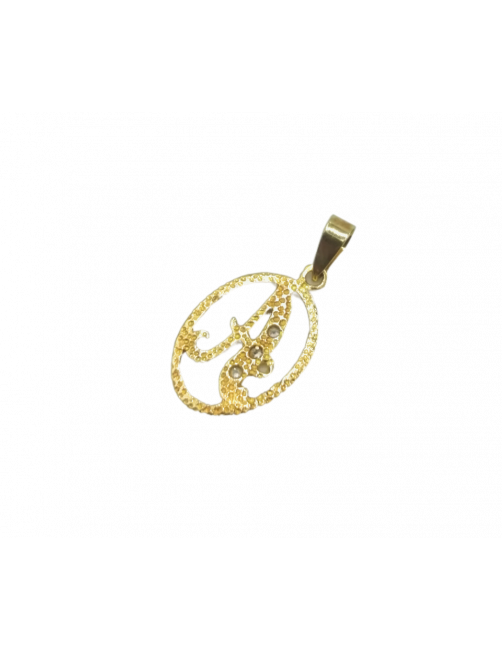 Colgante "Inicial A con Cerco Labrado" en Oro de 18K. Una joya única con cerco labrado y con tres circonitas engastadas que aportan mucha luz. Un colgante de fabricación española con la parte trasera repujada y maciza. Mide 2,3 cm de largo incluyendo reasa. Se envía presentada en un estuche de Joyería Beamar.