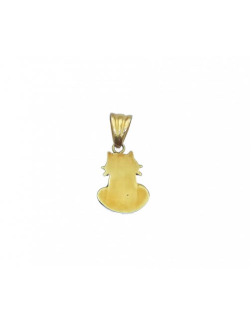 Colgante "Gato" en Oro de Ley 18K. Tiene un diseño en escultura de gato en Oro y está esmaltado en color azul, verde y negro. El tamaño de 2,5 cm de longitud (incluyendo reasa) es ideal para combinar con otros colgantes. Se envía presentado en un estuche de piel Joyería Beamar.