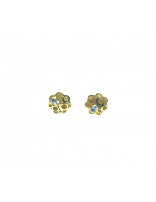 Los Pendientes "Flor Azul" son de Oro de Ley 18K. Tienen un precioso diseño en forma de flor calada con una piedra Aguamarina engastada en garra que aporta mucha luz. El tamaño es ideal con 0,9cm de diámetro y cierre de presión muy seguro. Se envía presentado en un estuche de piel de Joyería Beamar.