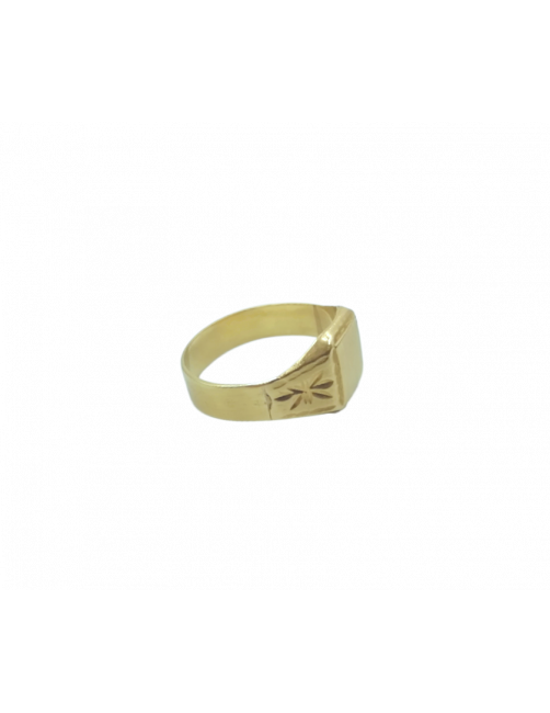 Sello de Comunión "Cub" realizado en Oro 18K. Cabeza cuadrada con labrado y tallado en estrella en los laterales. Se puede personalizar con las iniciales. Un recuerdo muy especial para un día único.