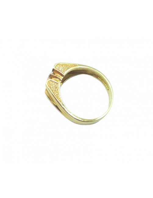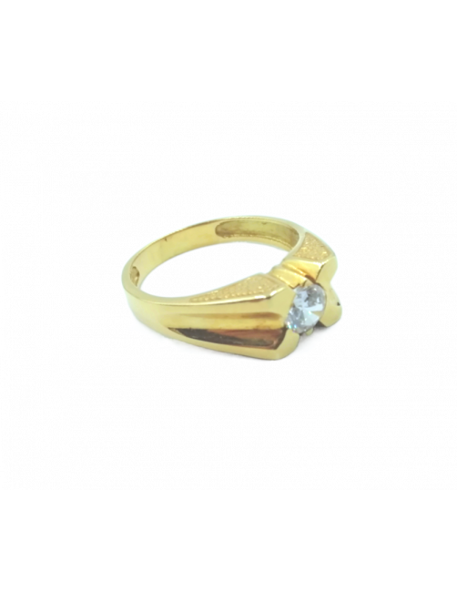 La Sortija "Petro" está fabricada en Oro de Ley 18K con una Circonita central engastada con garras estilo solitario y tiene un precioso tallado en la galería de la sortija. Es un anillo macizo de fabricación española ideal para caballero.
