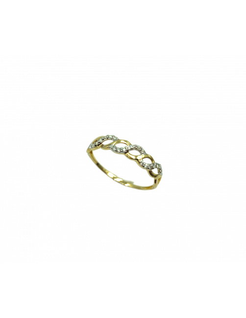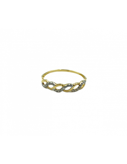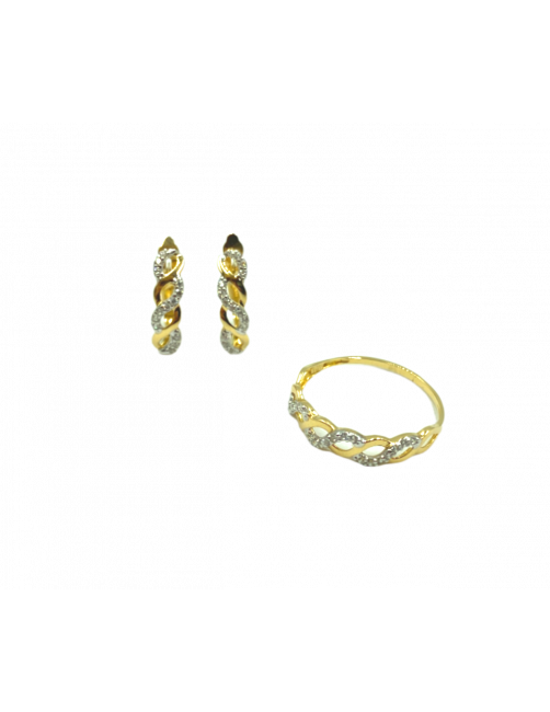 La Sortija "Nataly" es de Oro de Ley 18K en Blanco y Amarillo. Tiene un precioso diseño trenzado central con circonitas engastadas y dispone de pendientes a juego.