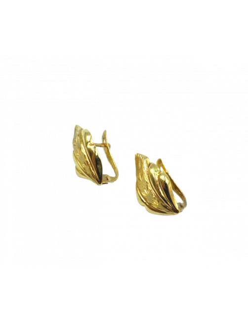 Pendiente "Hoja" en Oro de Ley 18K con diseño de hojas labradas. Pendiente tradicional de fabricación española con cierre catalán y tamaño ideal de 1,7 cm.