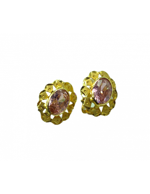 Pendiente "Burdeos" en Oro de Ley 18K con Rosa de Francia facetada y ovalada. Pendiente elegante de fabricación española con cierre catalán y tamaño ideal de 1,3 cm.
