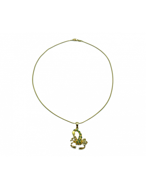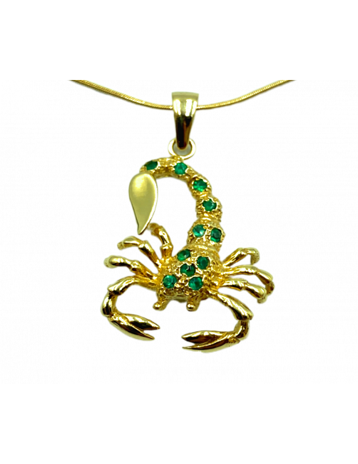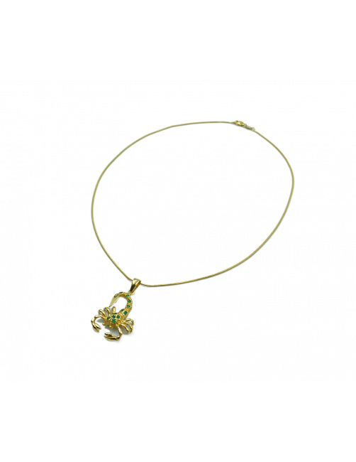La gargantilla "Sauvage Collection Scorpion" está fabricada en Oro de Ley 18K con diseño de Escorpion en escultura y Esmeradas engastadas que dan vida a la creación. La gargantilla tiene una cadena muy sutil en Oro amarillo, que aporta elegancia a la pieza, con un largo ideal de 40 cm.
