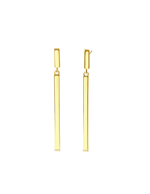 Pendientes largos fabricados en Oro amarillo de Primera Ley 18K . Pendientes elegantes y modernos con un largo ideal de 5 cm y cierre mariposa muy cómodo y seguro.