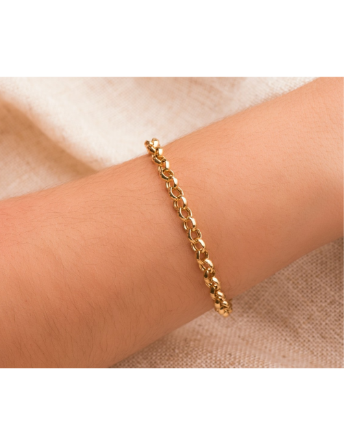 Pulsera unisex fabricada en Oro amarillo de Primera Ley 18 K. La pulsera tiene un diseño de rolo redondo muy versátil y con un tamaño ideal de 6mm de diámetro. Tiene un largo de 19cm y un cierre mosquetón muy seguro.