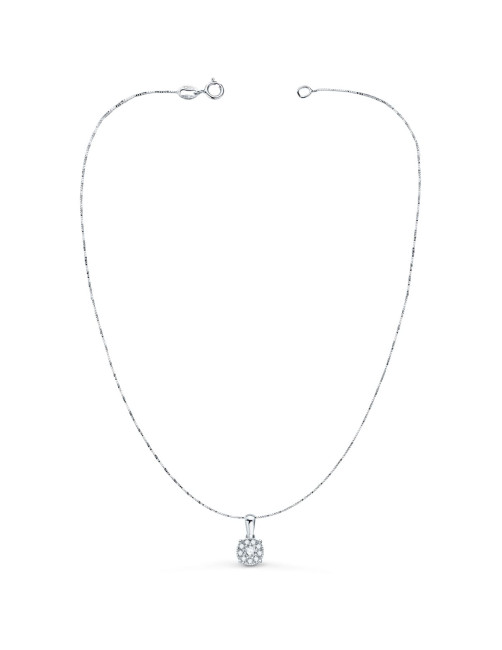 18K gargantilla oro blanco colgante 6.5 mm diamantes 0.182 qts cadena 42 + 3 cm