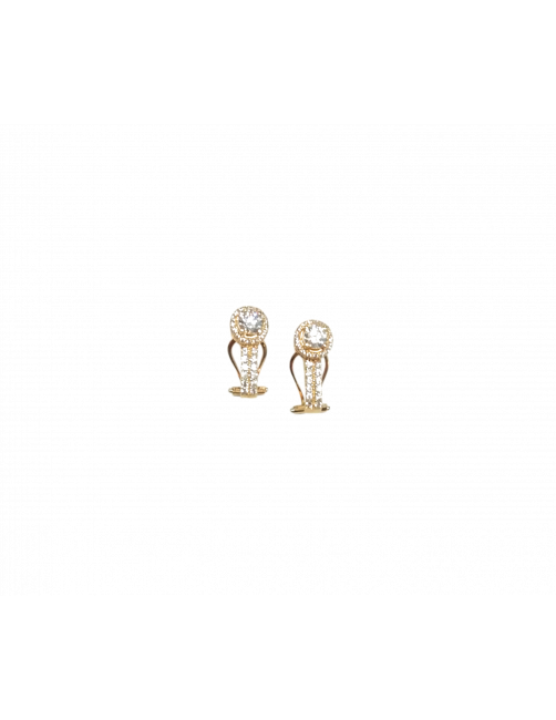 Los pendientes "Galeria" están fabricado en Oro de Primera Ley 18K, circonita central engastada con cuatro garras, un carril doble con circonitas y cierre omega muy cómodo y de ajuste perfecto. Una joya con un diseño elegante y muy actual de fabricación española. Los pendientes "Galeria" tiene la opción sortija a juego. Se envía presentado en un estuche de piel de Joyería Beamar.