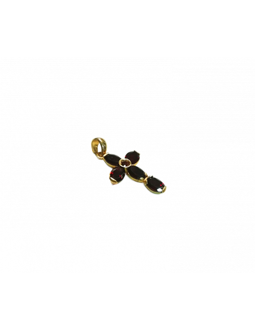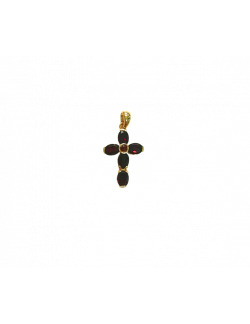 La Cruz "Granate" está fabricada en Oro de Ley 18K con cinco granates ovalados y un granate redondo central. Una cruz que mide 3,5 cm de largo, de fabricación española y diseño elegante y versátil. Se envía presentada en un estuche de piel de Joyería Beamar. Envío para regalo bajo petición del cliente.