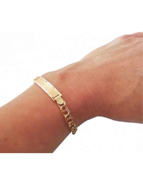 La Esclava "Together" está fabricada en Oro de Primera Ley 18K con eslabón macizo de estilo húngaro. Una pulsera imprescindible como fondo de joyero. La esclava tiene una chapa moderna de fondo satinado y borde liso brillo que permite resaltar la grabación. Cierre de mosquetón muy seguro. GRABACIÓN INCLUIDA: debe indicar el texto a grabar cuando haga su pedido. Se envía presentada en un estuche de piel de Joyería Beamar. Envío para regalo bajo petición del cliente.